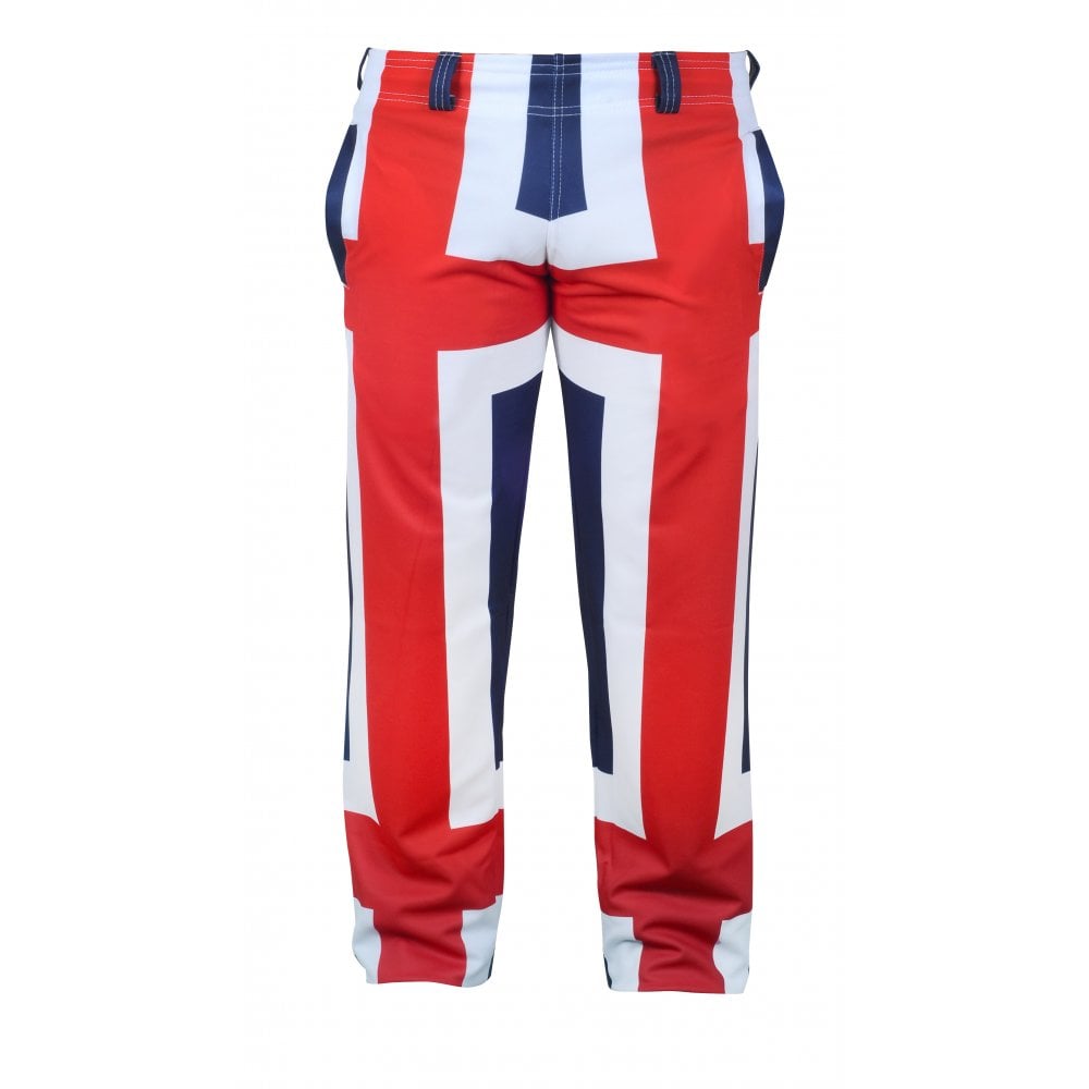 These Union Jack Golf Trousers are ideal for making a statement on the golf course. With an elasticated waist and loops for a belt, our Union Jack Golf Trousers are equipped with a back pocket and 2 side pockets.
