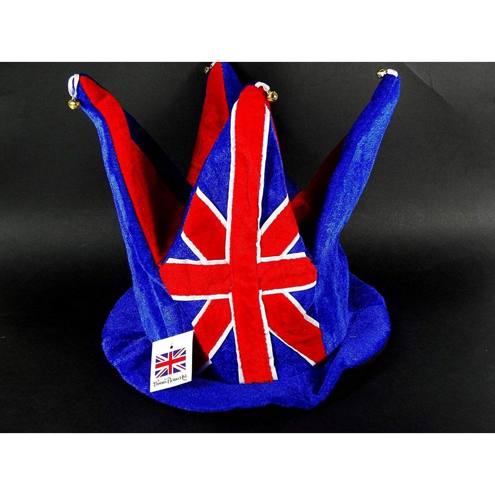 Union Jack on the front and plain blue at the back, this hat comes with one tiny bell on each of its four points. Everyone will hear you wearing this one!