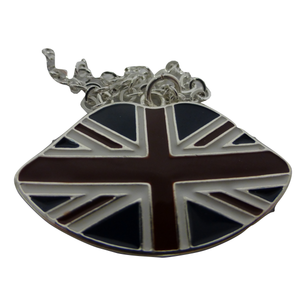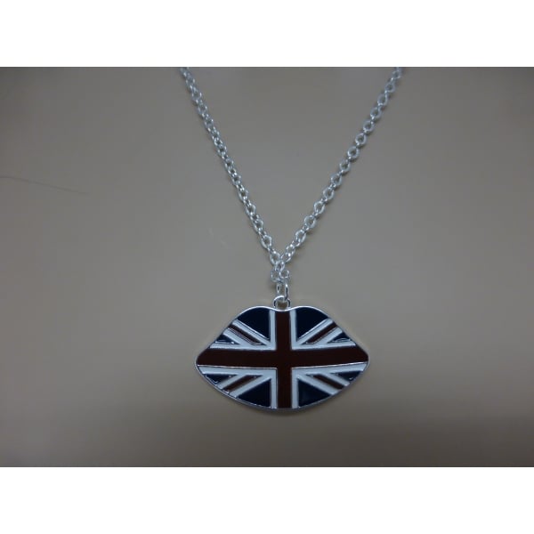 A silver effect 18 inch necklace with Union Jack branded lips pendant