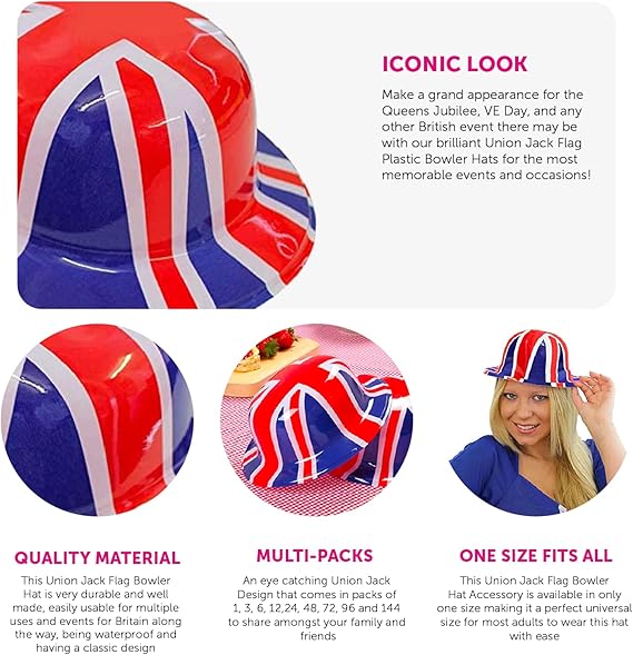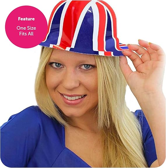 Pack of 6 plastic Union Jack Bowler Hats